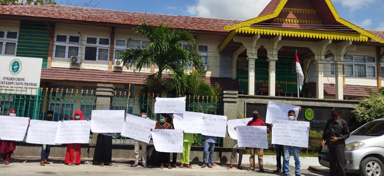 Mereka menuntut agar Pengadilan Negeri Pekanbaru memberikan Keadilan untuk Direktur PT STM (Sumatera Tani Mandiri) Muhammad Yusuf Hasim.