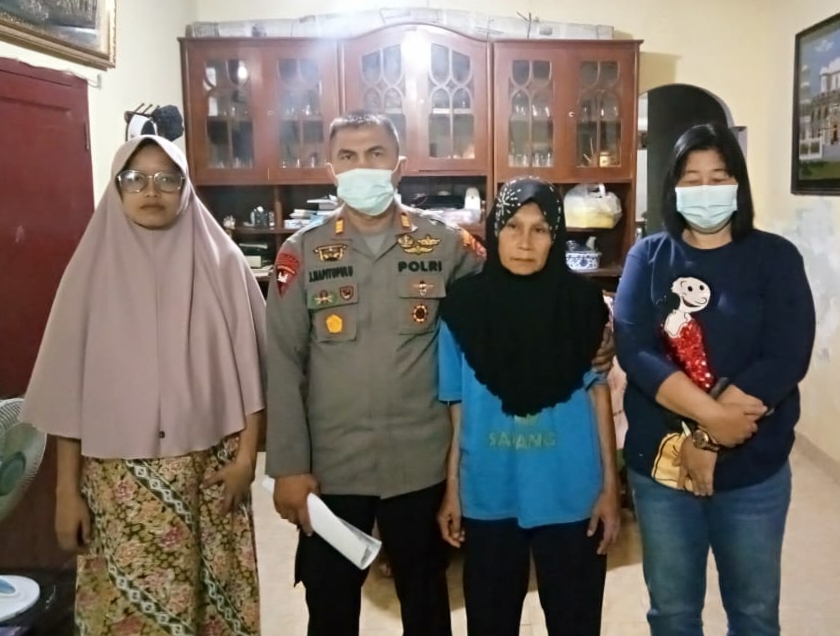 Janpiter di dampingin personil Polwan dari unit Polsek Percut Sei Tuan, dalam jumpa dengan Desi serta ibu Nopie Ritani Lumban Tobing.