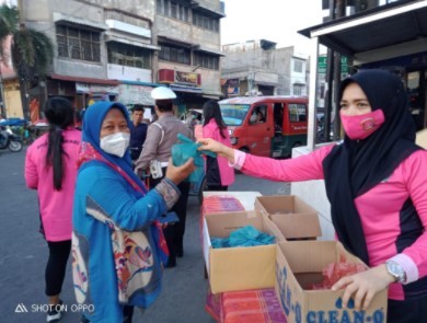 Ketua PC Bhayangkari Kota Medan Ny Riko Sunarko dan Ketua Ranting Bhayangkari Polsek Medan Area, pada hari jumat sore 7/5/2021 dengan secara simbolis membagikan bungkusan takjil kepada masyarakat yang mau berbuka puasa di kawasan Sukaramai Medan.