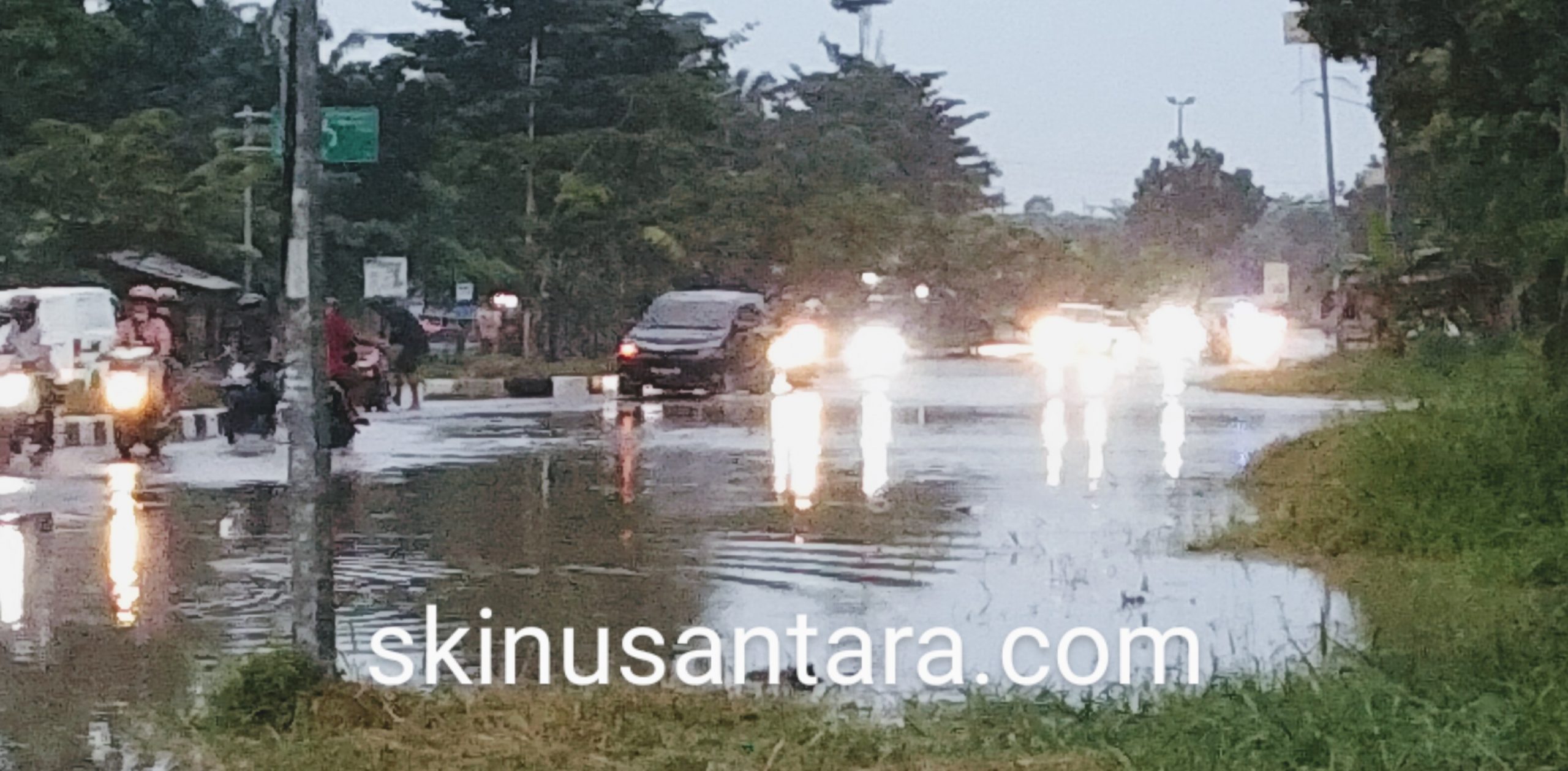 “Motor saya mogok ,tadi saya kira debit air tidak terlalu tinggi,Sewaktu saya melintas rupanya saya terjebak di air yang agak dalam,”sebut sang pengendara sambil mendorong motor roda duanya kepada skinusantara.com.