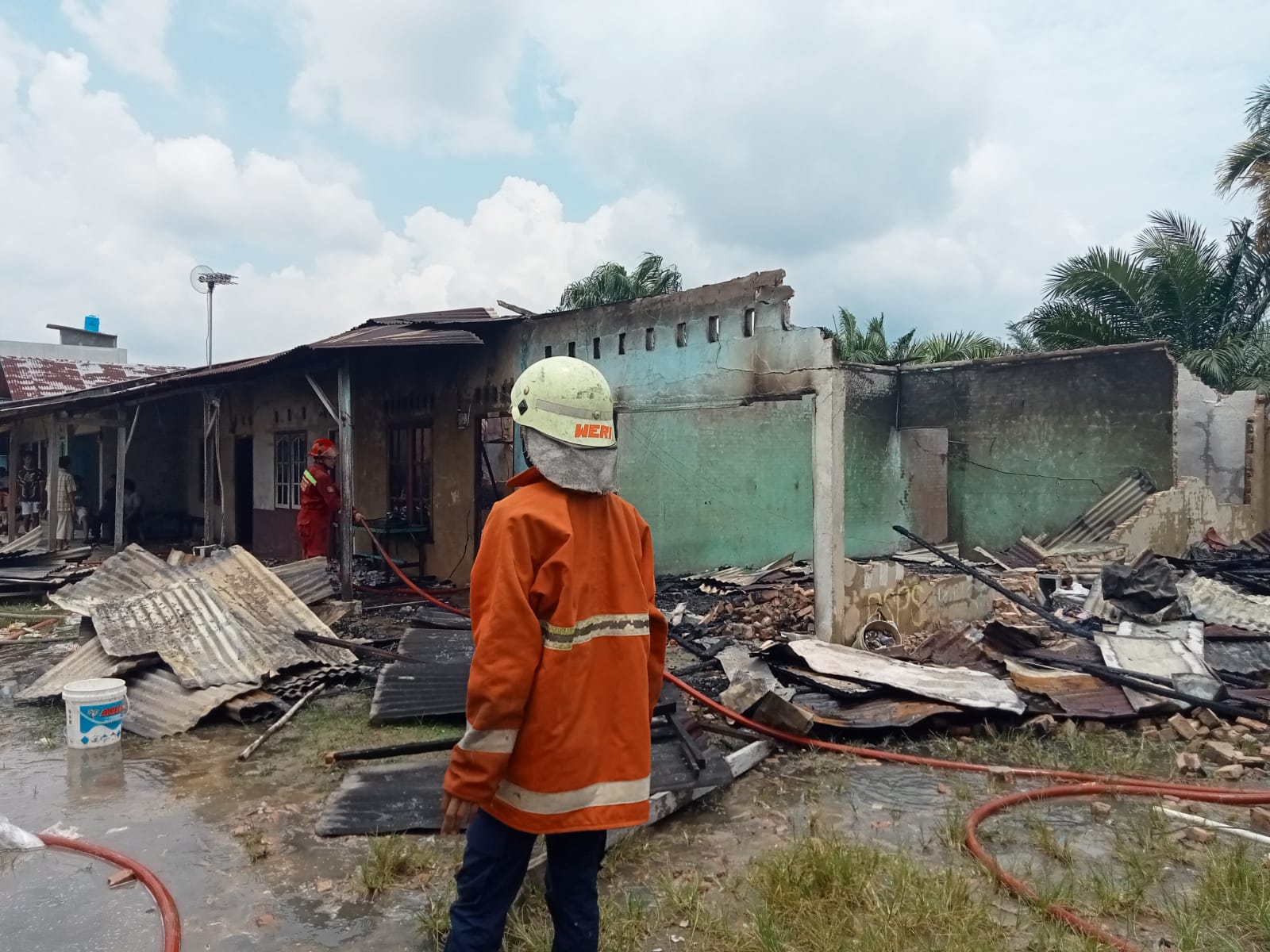 Tampak di lokasi kebakaran hanya sedikit peralatan rumah tangga yang bisa diselamatkan berkat partisipasi warga dan tetangga. Tampak juga hadir di lokasi, Lurah Sialang Rampai Iryanto MHi didampingi ketua RT 02 Drs Winarko serta RW 02 M Imron.
