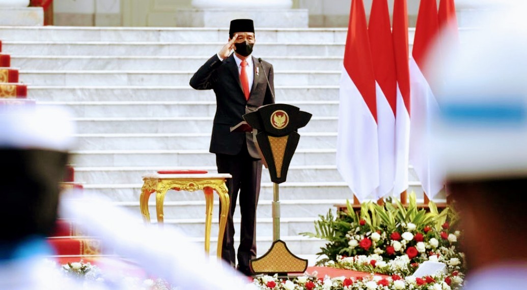 Presiden Joko Widodo yang bertindak selaku Inspektur Upacara memimpin upacara peringatan ke-76 Hari Tentara Nasional Indonesia (TNI) yang digelar di halaman Istana Merdeka, Jakarta, pada Selasa, 5 Oktober 2021. Tema yang diangkat pada peringatan tahun ini adalah “Bersatu, Berjuang, Kita Pasti Menang”.