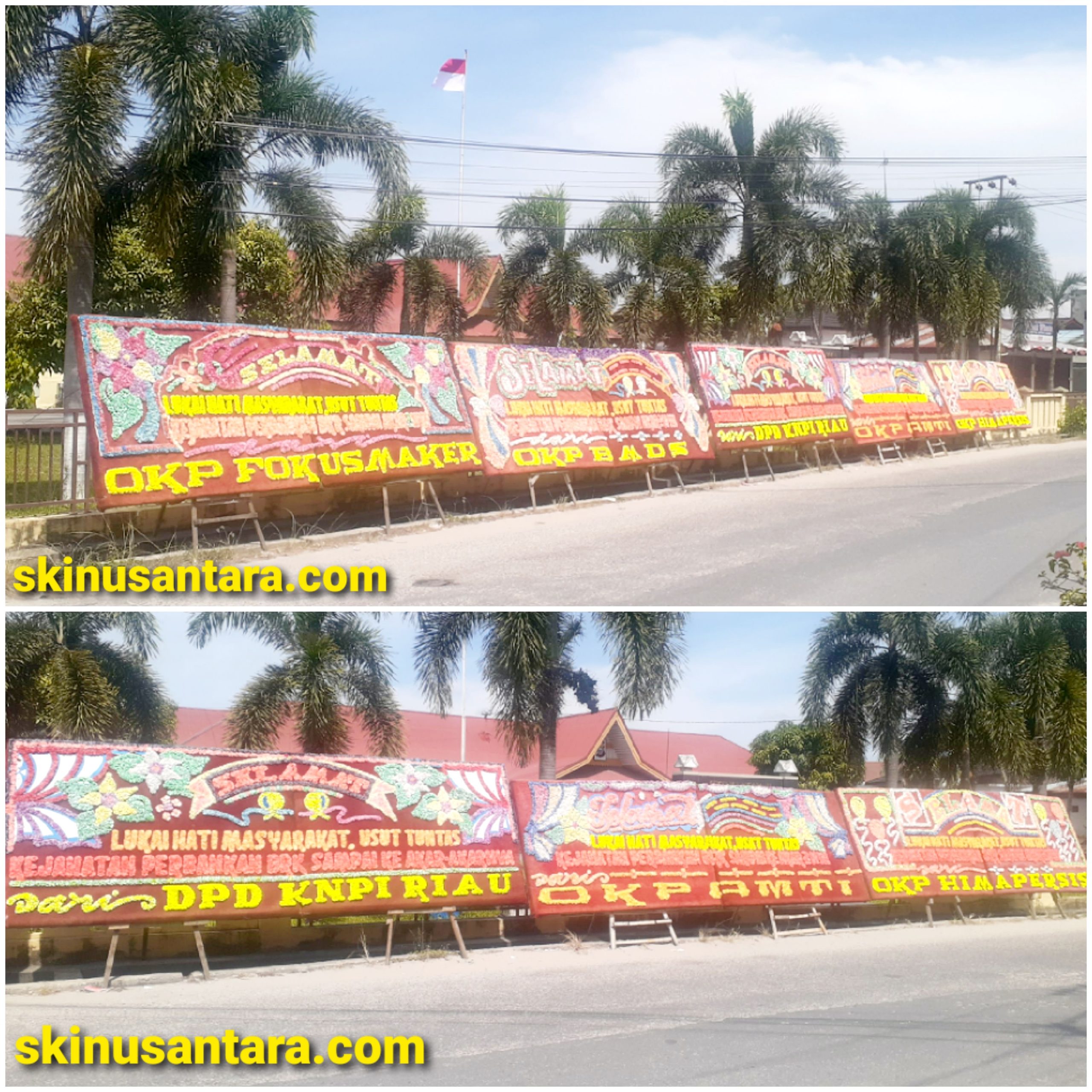 Tampak ada kejutan di seberang Jalan kantor Pengadilan Negeri/PN Pekanbaru,terpampang ada 5 papan bunga ,salah satunya bertuliskan ‘Lukai Hati Masyarakat,Usut Tuntas Kejahatan Perbankan BRK Sampai Ke Akar Akarnya.